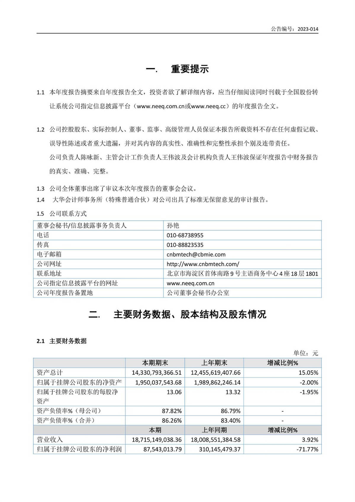 中建信息2022年年度報告摘要