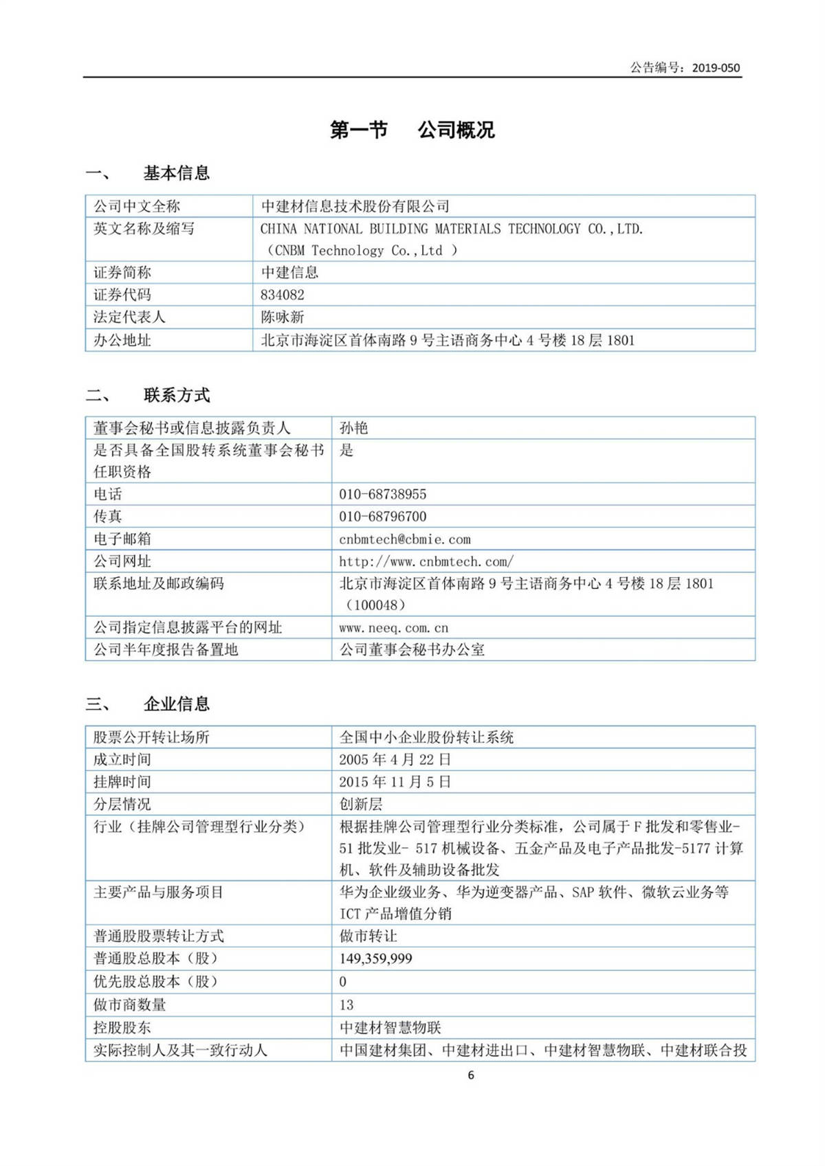 中建信息2019年半年度報告