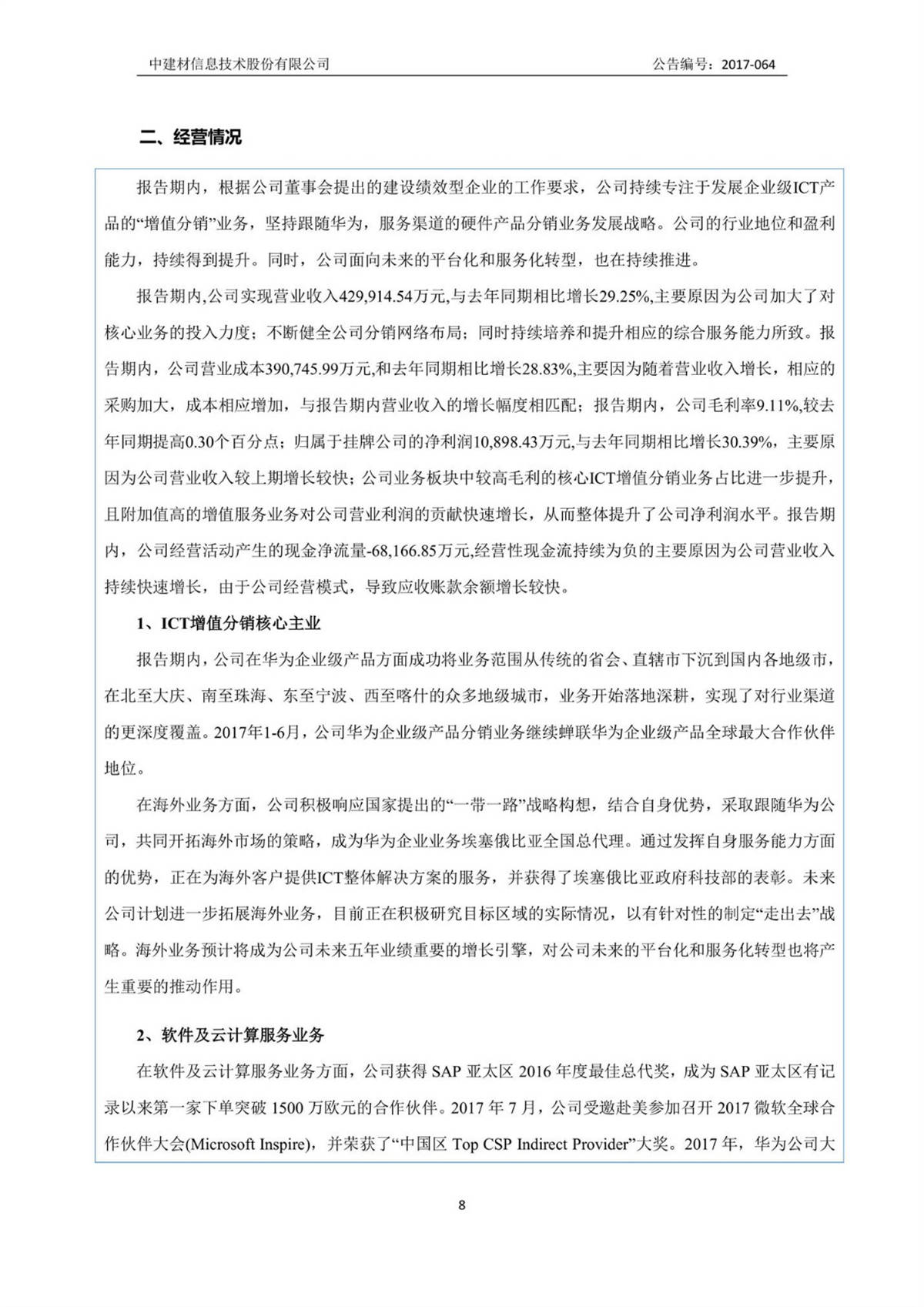 中建信息2017年半年度報告