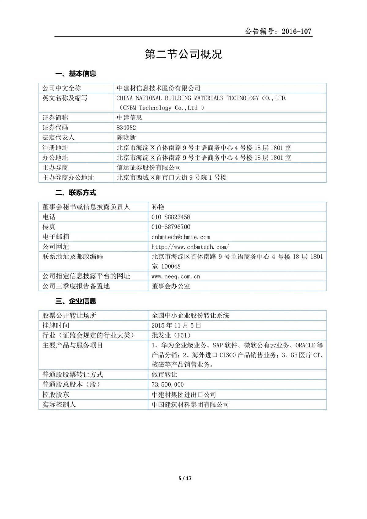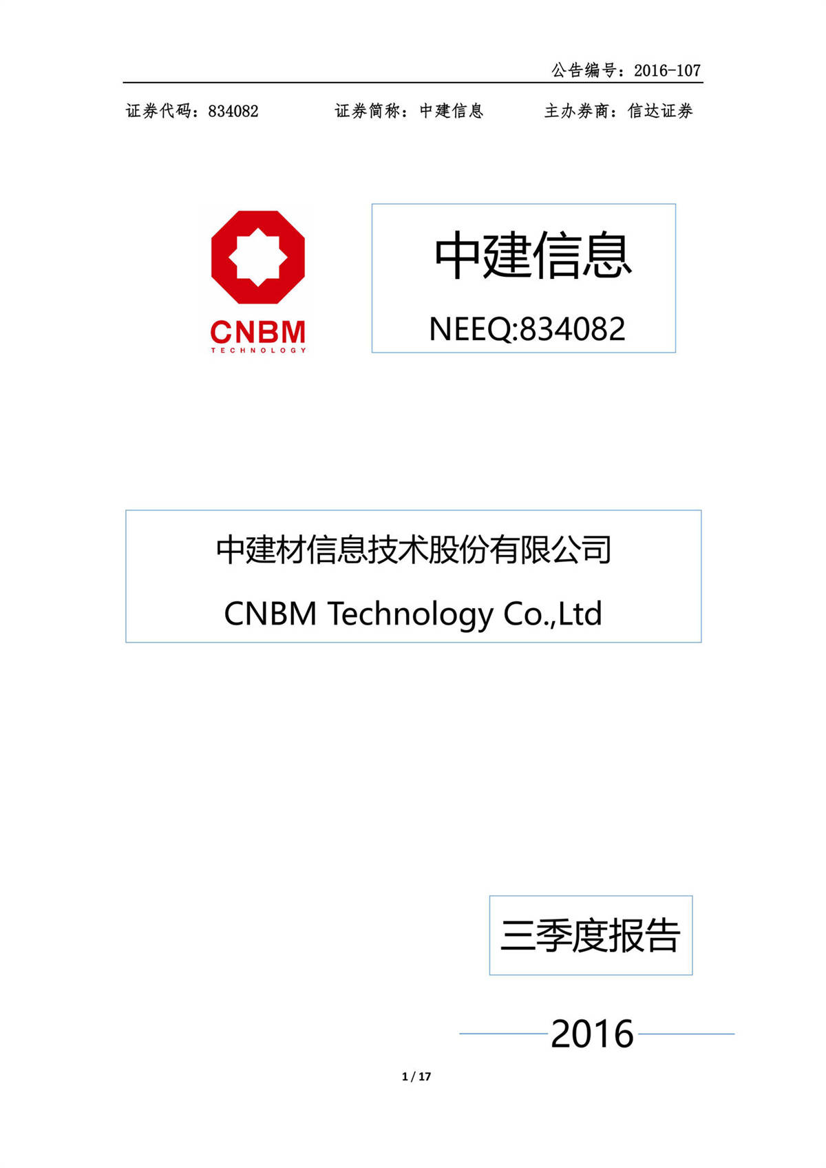 中建信息2016年三季度報告
